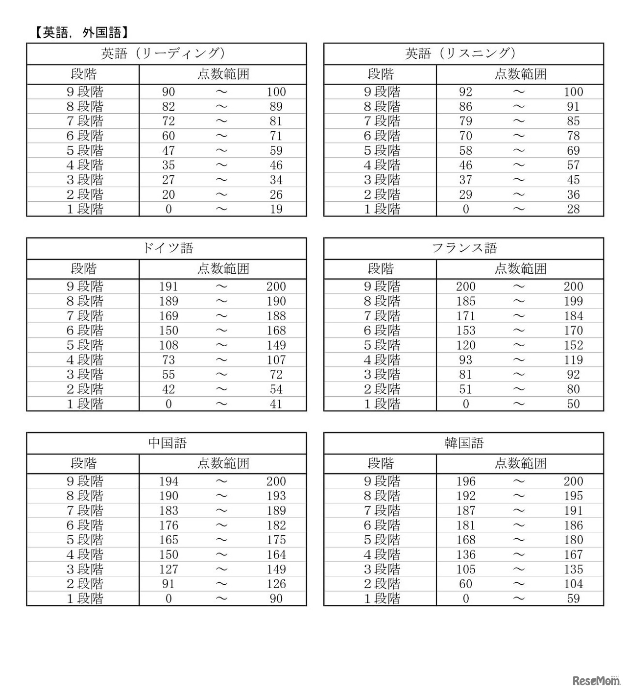2023年度(令和5年度)大学入学共通テスト「段階表示換算表」