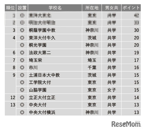 学習塾が勧める中高一貫校ランキング2022「校舎など施設、設備が充実している中高一貫校」1~13位