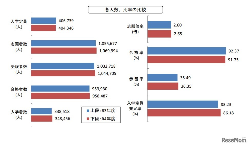 画像出典:日本私立学校振興・共済事業団「令和4(2022)年度私立高等学校入学志願動向」 各人数、比率の比較