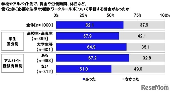 画像出典:日本労働組合総連合会(連合) 労働に関する知識を学習する機会があったか