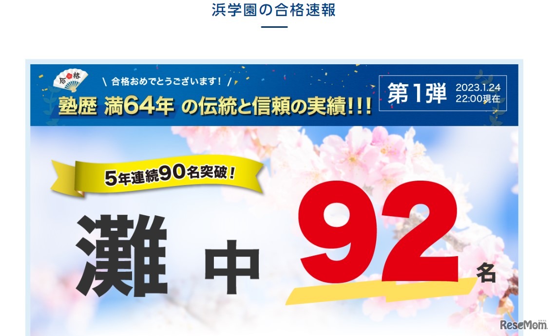 浜学園の合格速報