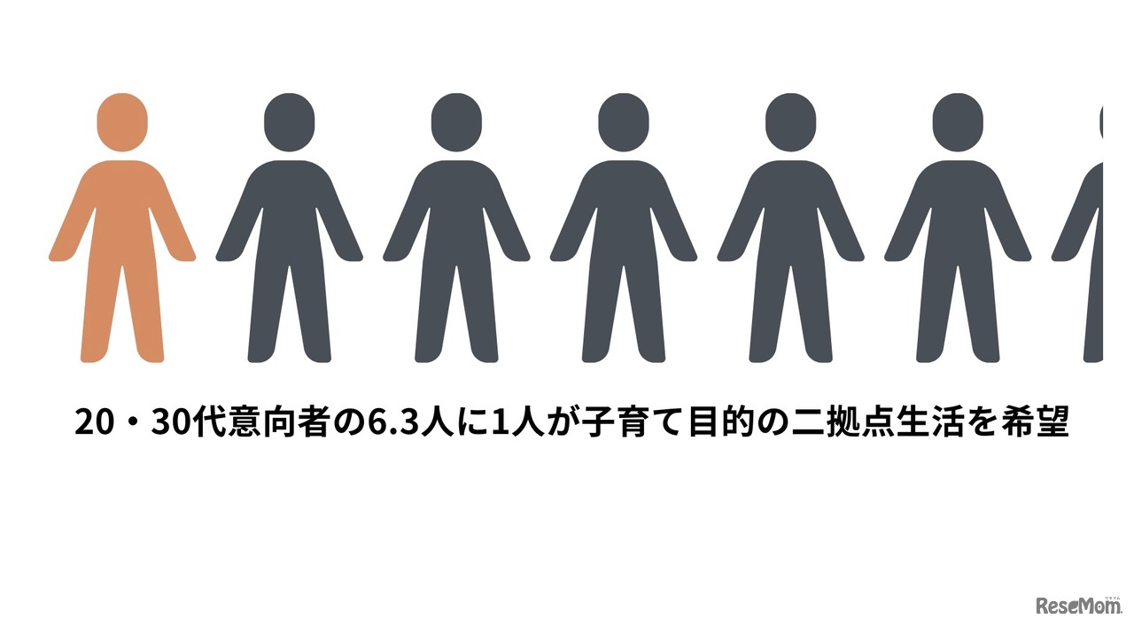20・30代意向者の6.3人に1人が子育て目的の2拠点生活を希望
