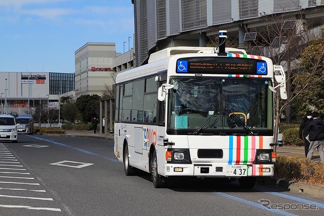 《写真撮影 編集部》 埼玉工業大学の自動運転バス(千葉・幕張新都心 1月22日)