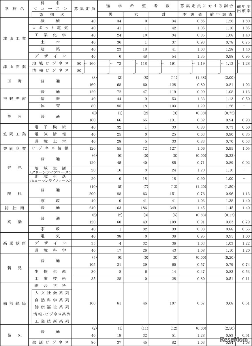 【高校受験2023】岡山県、第2次進学希望状況調査(1/10時点)岡山城東1.57倍、岡山朝日1.01倍 6枚目の写真・画像