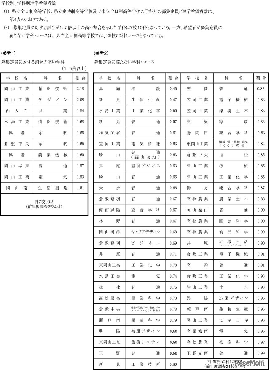 【高校受験2023】岡山県、第2次進学希望状況調査(1/10時点)岡山城東1.57倍、岡山朝日1.01倍 8枚目の写真・画像