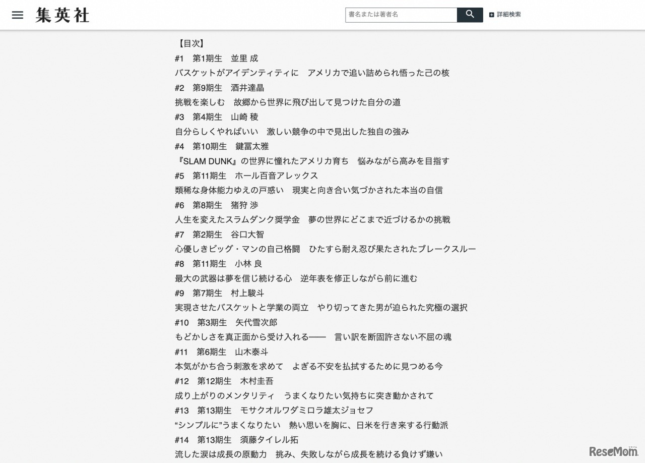 集英社は2023年1月26日、ノンフィクション新刊「スラムダンク奨学生インタビュー その先の世界へ」を刊行。高校卒業後にバスケットボールで夢をつかもうと、「スラムダンク奨学生」として渡米した14人へのインタビューをまとめた。価格は1,815円(税込)。