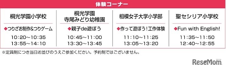体験コーナー スケジュール