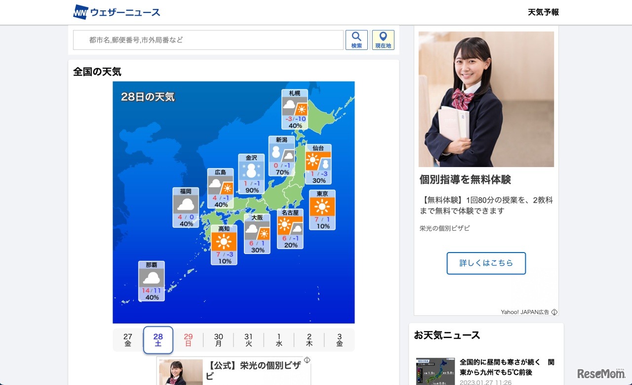 画像出典:ウェザーニュース 2023年1月28日の天気予報