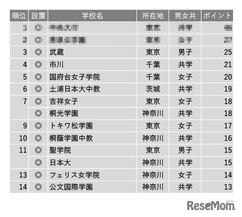 学習塾が勧める中高一貫校ランキング2022「図書館が充実している中高一貫校」1~14位