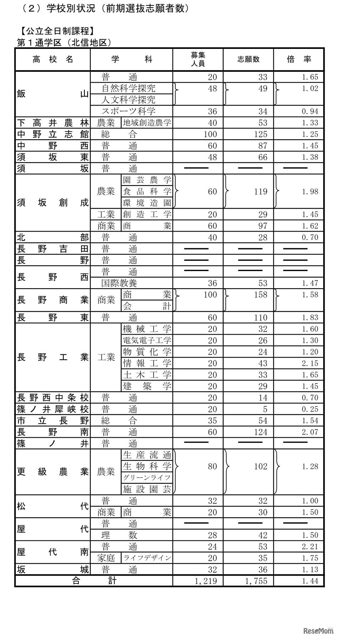 【高校受験2023】長野県公立高、前期選抜の志願状況(確定)屋代(理数)1.50倍 1枚目の写真・画像