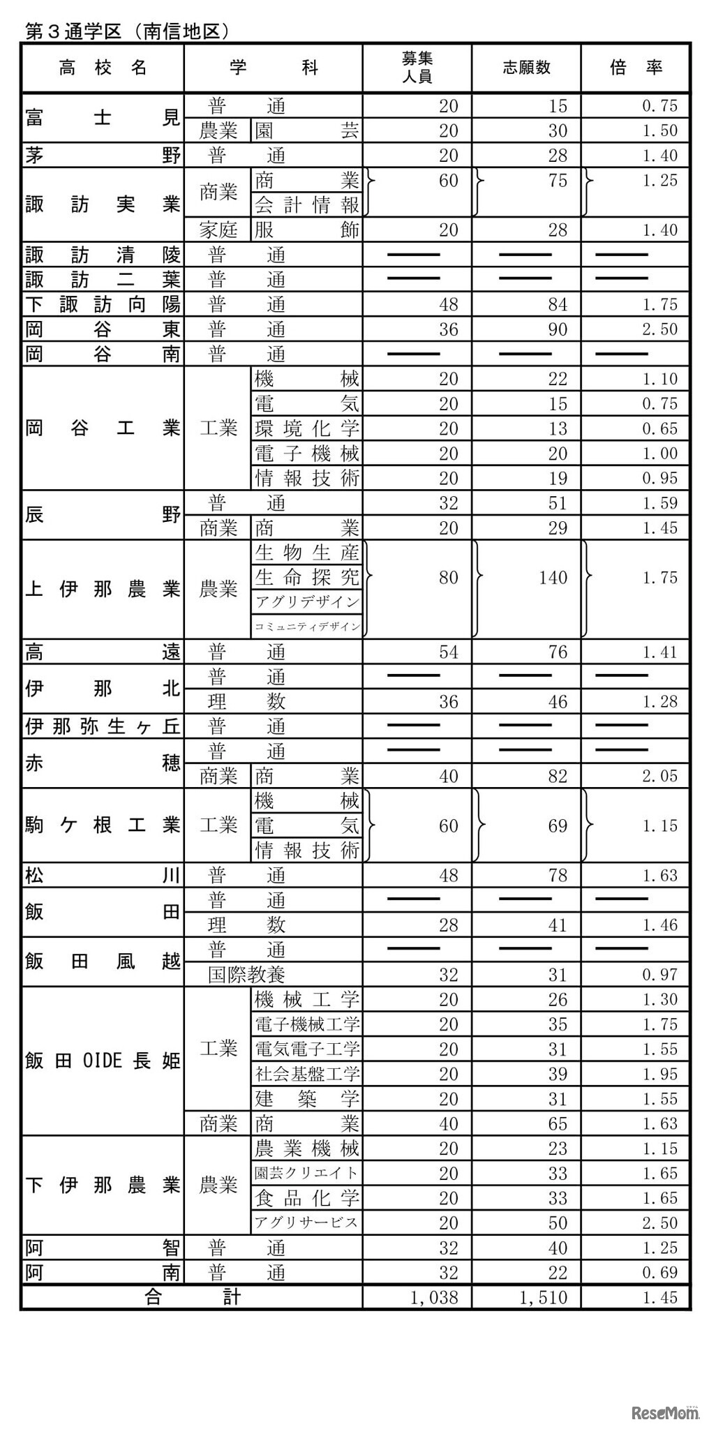 【高校受験2023】長野県公立高、前期選抜の志願状況(確定)屋代(理数)1.50倍 3枚目の写真・画像
