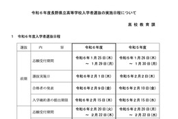 長野県教育委員会は2023年2月22日、2023年度私立高校入学者選抜における一般入試の志願者状況(速報値)を公表。募集人員923人に対し、志願者数は3,958人で倍率は4.29倍。また、推薦入試の志願・合格者状況を2月10に公表。募集定員3,525人に対し合格者数は5,213人だった。