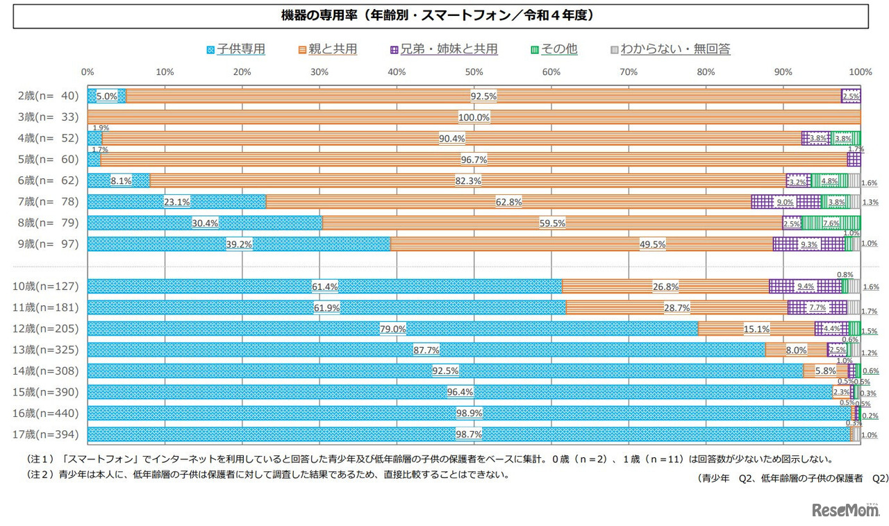 画像出典:内閣府 機器の専⽤率(年齢別・スマートフォン)