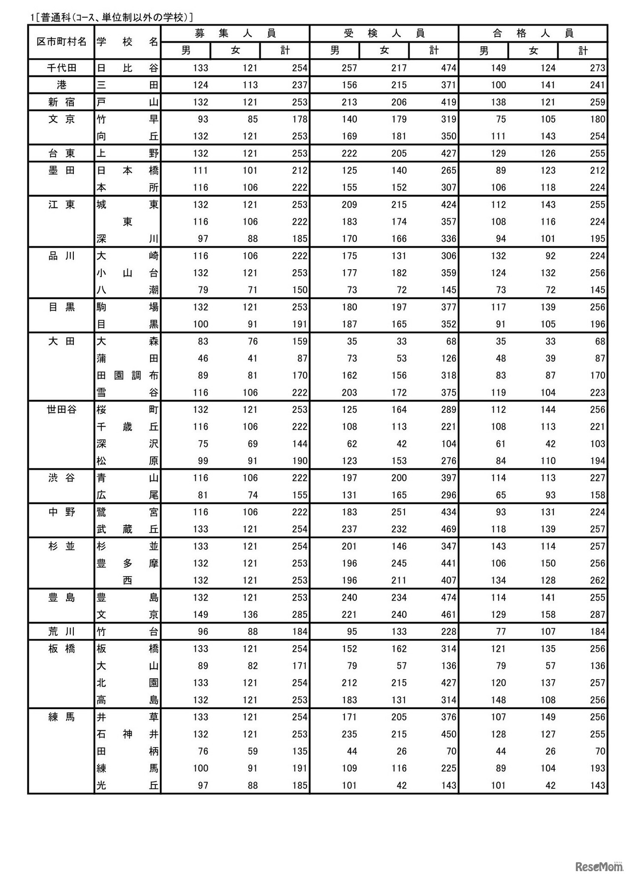 2023年度(令和5年度)東京都立高等学校入学者選抜合格状況 普通科(コース・単位制以外)