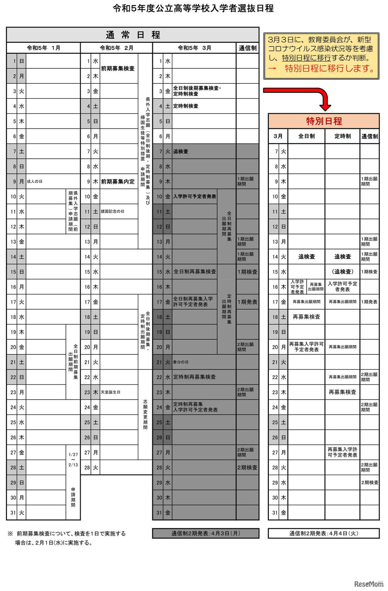 2023年度(令和5年度)公立高等学校入学者選抜 特別⽇程へ移⾏