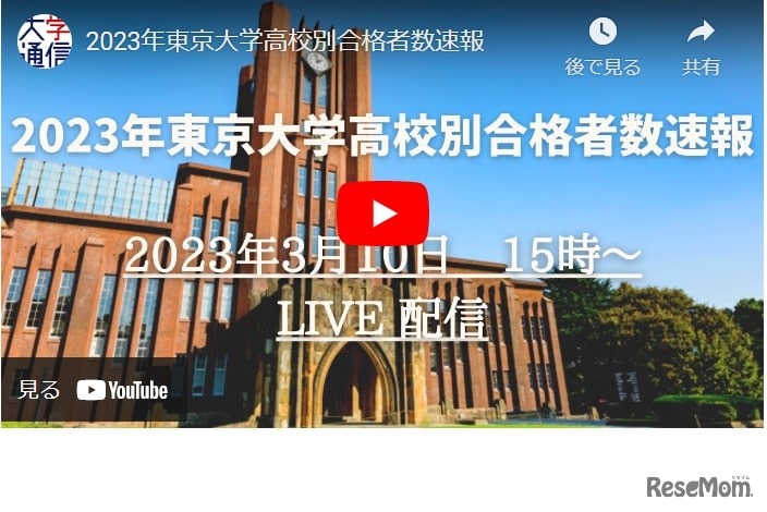 【大学受験2023】大学通信「高校別東大合格者数速報」3/10ライブ配信 1枚目の写真・画像