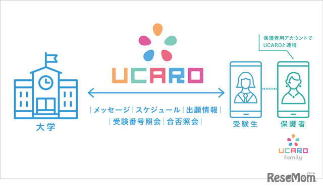 UCARO familyは、受験生向けポータルサイトのUCAROと連携し、家族で受験情報をスムーズに共有できる