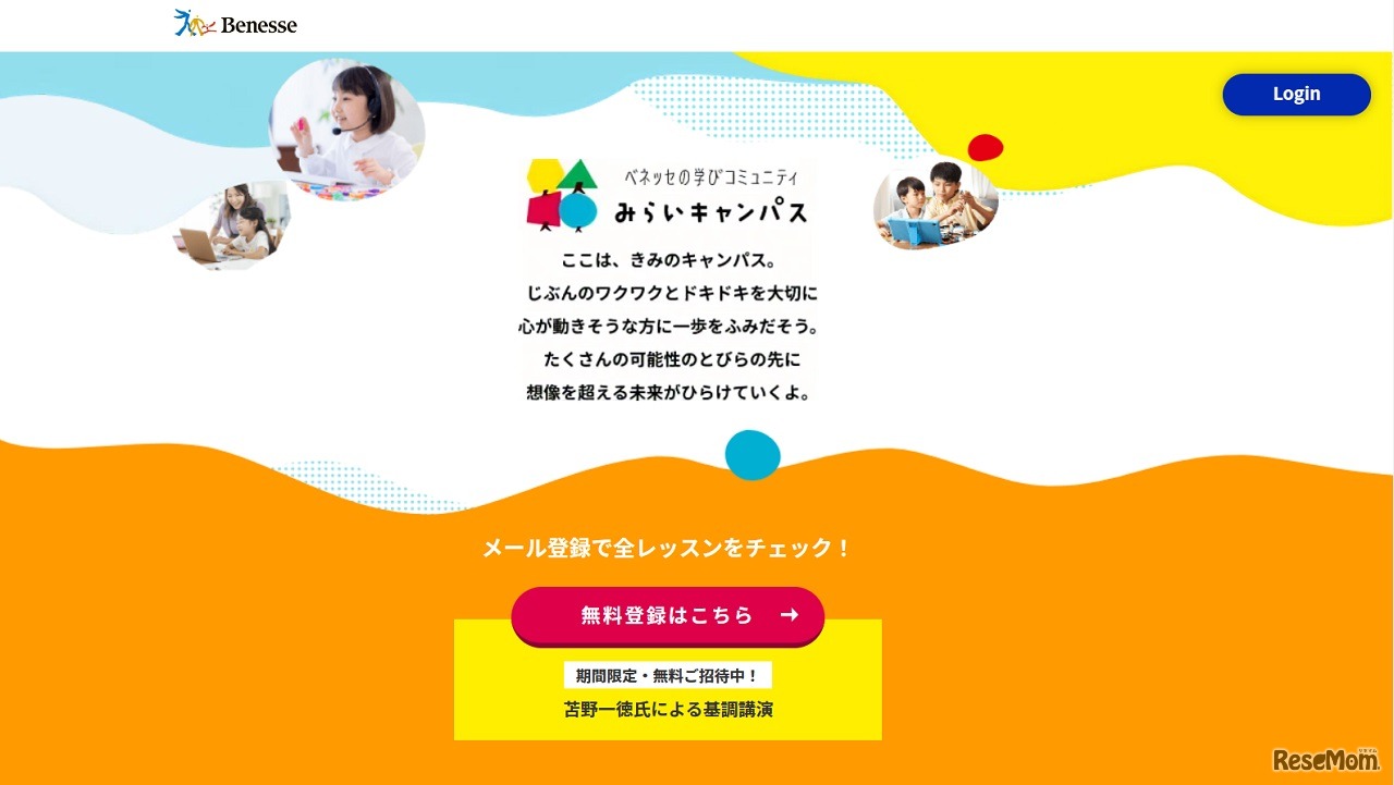 ベネッセコーポレーションは、小中学生対象のオンライン対話型ライブレッスン「みらいキャンパス」の受講受付を2023年3月より開始した。10ジャンル70講座以上から、子供の関心や得意にあったプログラムを見つけ、探究的な学びを体験できる。