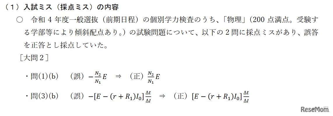 富山大学は2023年3月6日、2022年度(令和4年度)一般選抜(前期日程)において採点ミスがあったことを公表した。採点をやり直した結果、本来合格とすべきだった不合格者が5人、第1志望のコースで合格とすべきだった第2志望コース合格者が2人いるという。