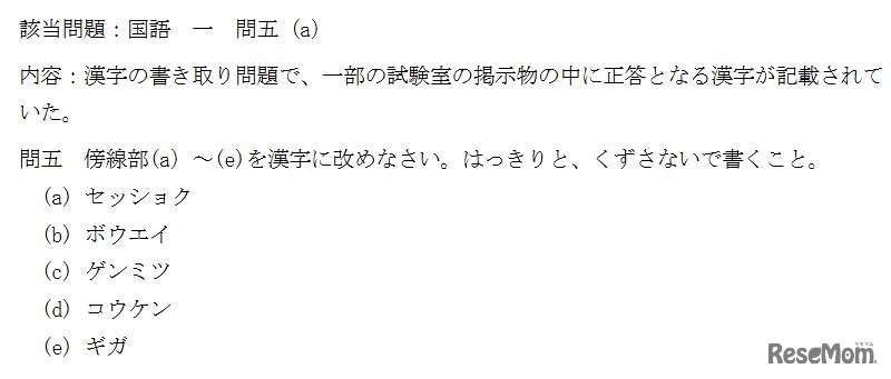 神戸大学は2023年3月6日、2023年度(令和5年度)一般選抜(前期日程)の国語の漢字書き取り問題において、一部の試験室の掲示物に正答となる漢字が記載されていたことを公表した。国語を受験した2,543人全員の解答を正答として取り扱う。