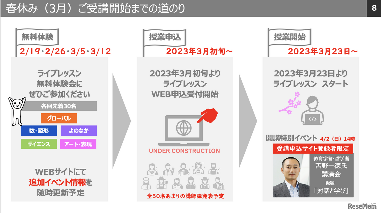 「みらいキャンパス」開講までのスケジュール