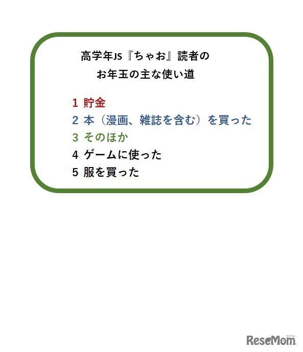 画像出典:小学館 高学年JS「ちゃお」読者のおこづかいのおもな使い道