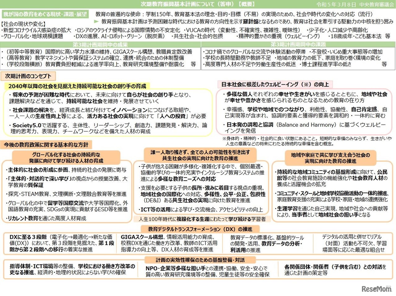 画像出典:文部科学省 次期教育振興基本計画の概要