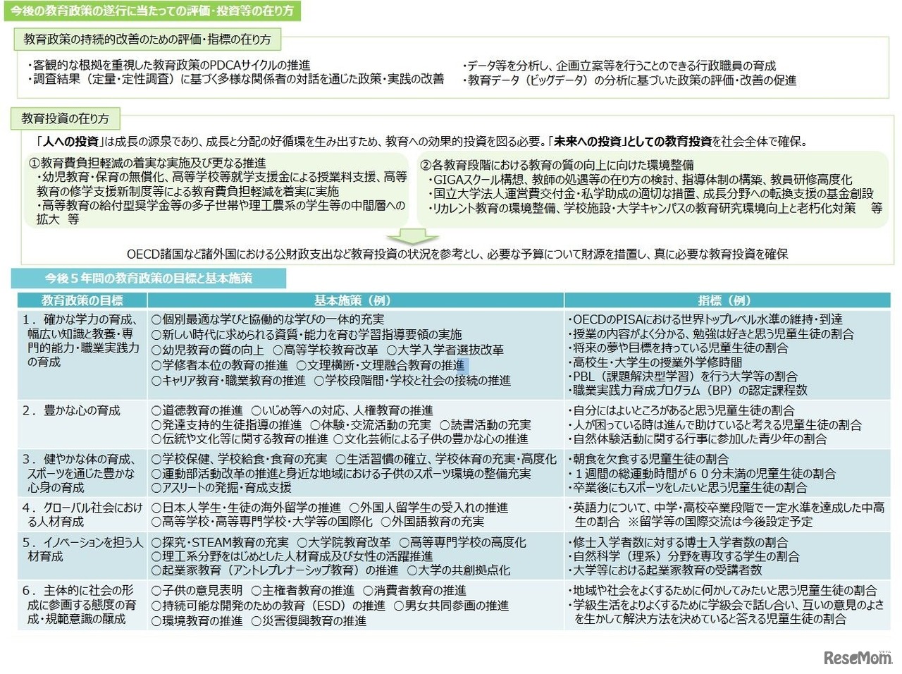 画像出典:文部科学省 次期教育振興基本計画の概要