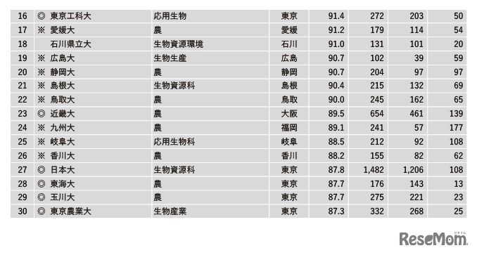 2022年学部系統別実就職率ランキング【農学系】16~30位