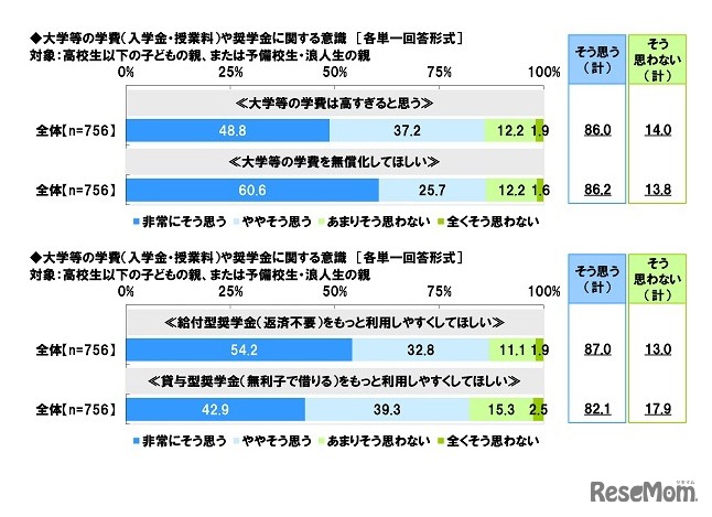 画像出典:ソニー生命保険「子どもの教育資金に関する調査」 大学等の学費や奨学金に関する意識