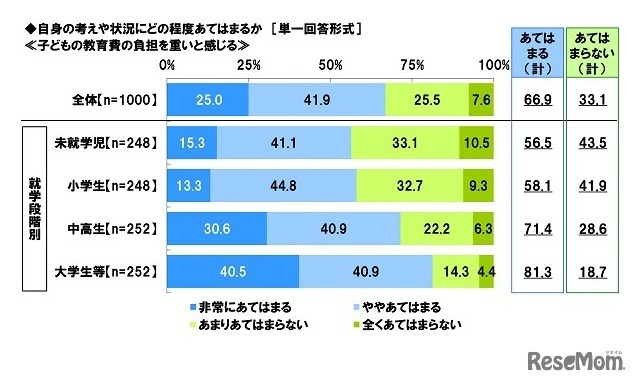 子供の教育費負担を重いと感じるか
