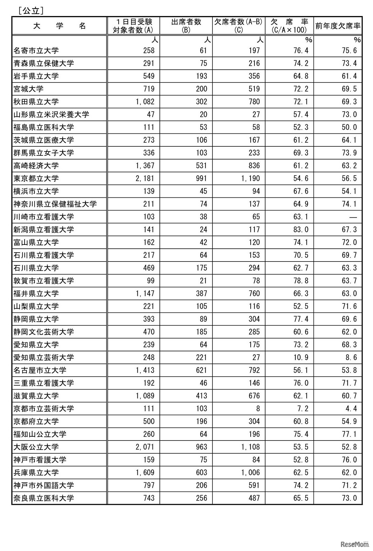 文部科学省は2023年3月12日、2023年度(令和5年度)国公立大学入学者選抜 後期個別学力検査等第1日目第1時限目(受験生個々についての第1時限目)の受験状況を発表した。欠席率は、国立62.7%、公立64.8%、計63.2%だった。
