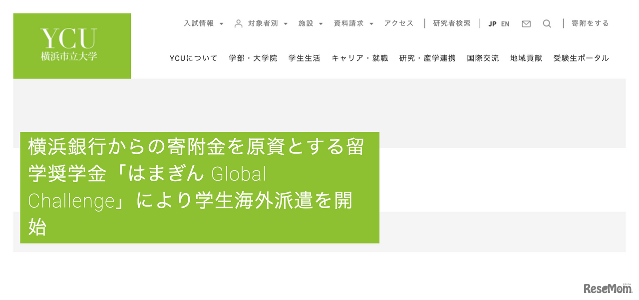横浜市立大学は、2023年度より横浜銀行の寄附金を原資とする留学奨学金プログラム「はまぎんGlobal Challenge」をスタートする。支給額は、プロポーザル型が月額20万円、経済支援型が留学1回につき最大20万円。学内選考を経て計4名の合格者を決定した。