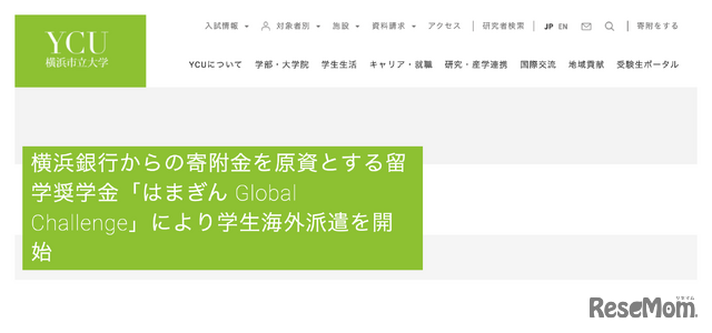 横浜市立大、はまぎん留学奨学金プログラムで学生海外派遣 1枚目の写真・画像