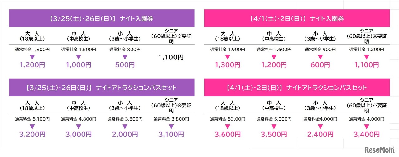 東武動物公園は2023年3月25日・26日と4月1日・2日に、夜間イベント「春のナイトZOO」を開催する。桜がライトアップされ、幻想的な夜の動物園・遊園地を楽しむことができる。
