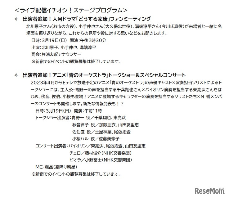 NHKは2023年3月18日~21日、NHK初の大型総合イベント「超体験 NHK フェス」を東京・西新宿にて開催する。一部プログラムは、NHKオンラインやYouTube等でライブ配信も行う。入場無料。