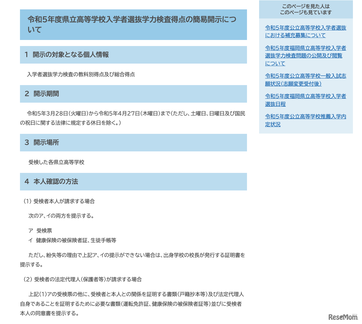 福岡県は2023年3月15日、令和5年度(2023年度)県立高等学校入学者選抜で学力検査得点の簡易開示を行うことを発表した。開示の対象となる個人情報は、入学者選抜学力検査の教科別得点と総合得点。開示は受検した各県立高等学校で行う。