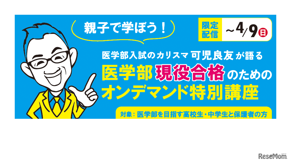 医系専門予備校メディカルラボは2023年4月9日までの期間、医学部を目指す高校生・中学生と保護者を対象とした「医学部現役合格のためのオンデマンド特別講座」を限定配信する。期間中は都合の良い時間に何度でも視聴可能。参加、申込特典あり。参加費無料。
