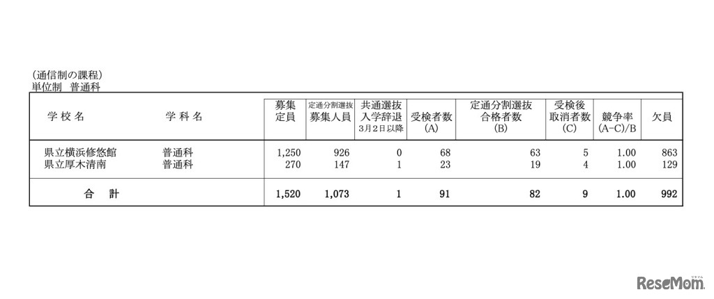 神奈川県教育委員会は2023年3月17日、2023年度(令和5年度)神奈川県公立高等学校入学者選抜一般募集定通分割選抜の合格者数と、二次募集の概要について公表した。二次募集は、定時制21校、通信制2校で実施。検査は3月27日に行う。