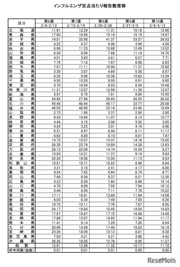 インフルエンザ、7週連続で注意報レベル超え…警報地域も徐々に拡大 3枚目の写真・画像