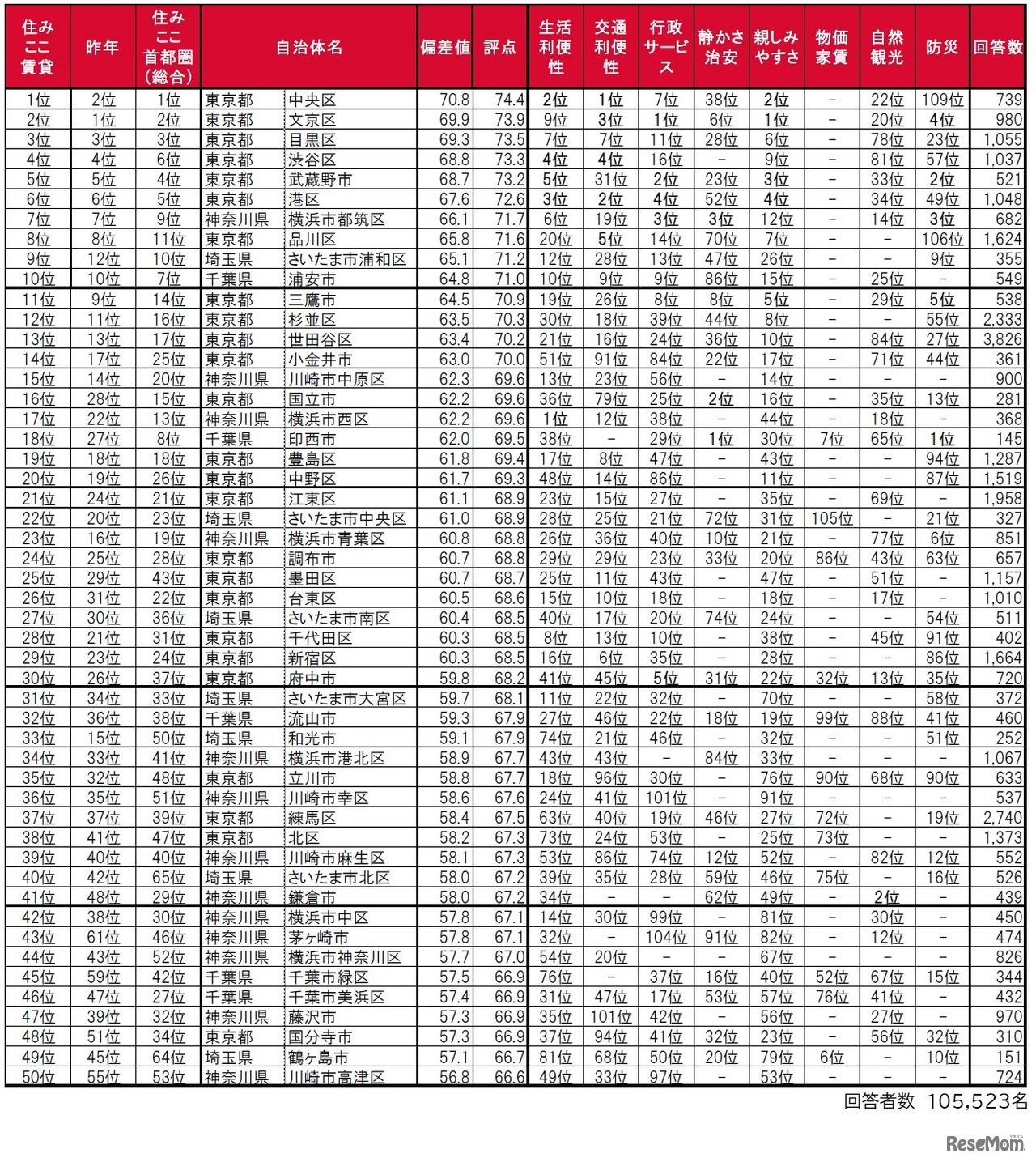 大東建託は2023年3月15日、「借りて住んだ(賃貸)&買って住んだ(持家)街の住みここちランキング2022<首都圏版>」を発表した。賃貸1位の駅は2年連続「表参道」、持家1位の駅は2年連続「みなとみらい」となった。
