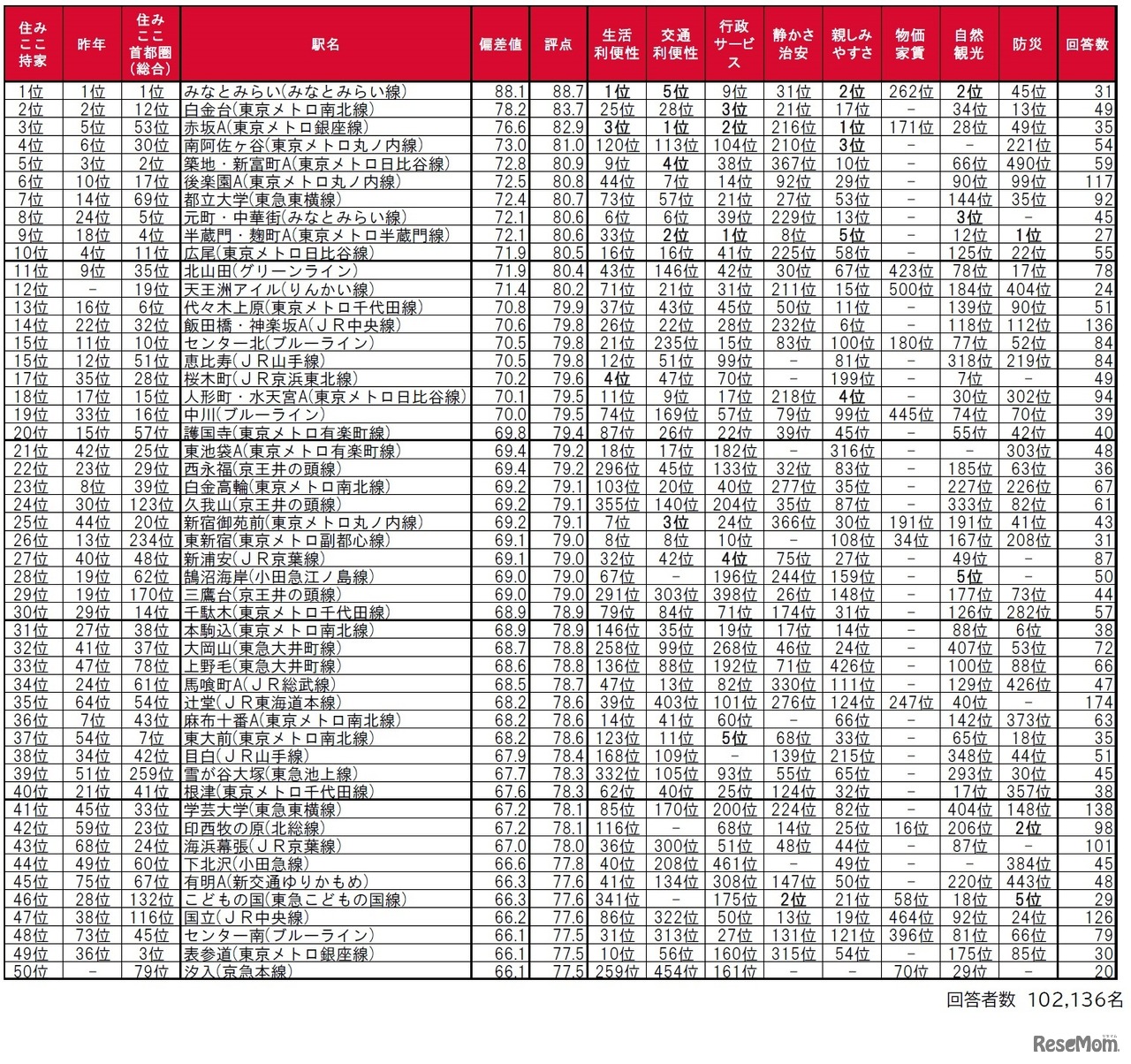 画像出典:大東建託 買って住んだ街(駅)の住みここちランキングTOP50