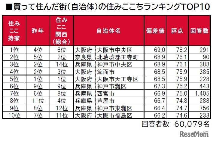 買って住んだ街(自治体)の住みここちランキングTOP10