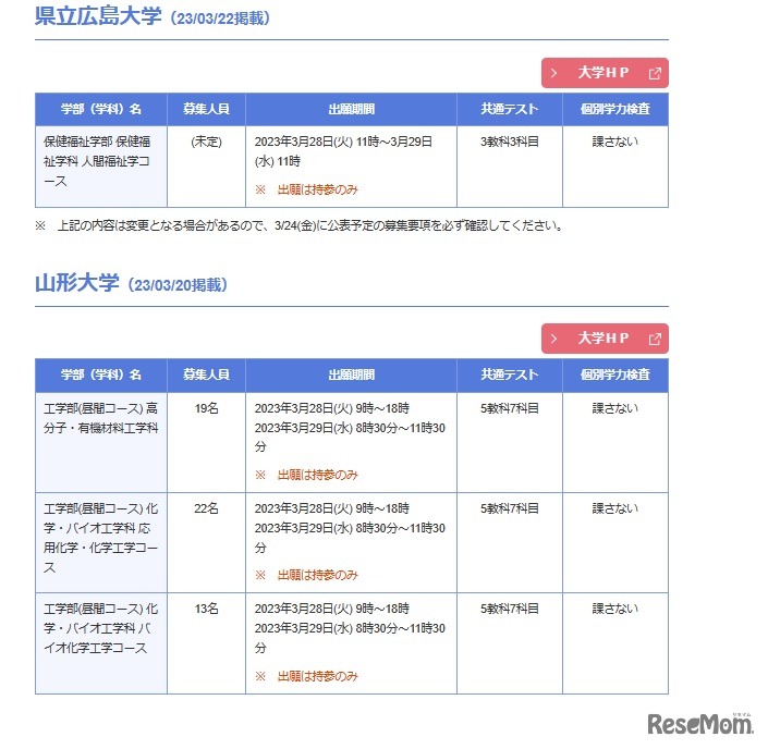 河合塾の大学入試情報サイト「Kei-Net」は、2023年度国公立大学欠員補充2次募集を発表している大学の一覧を掲載した。3月22日時点で茨城大学、島根大学、県立広島大学等の11校が募集している。