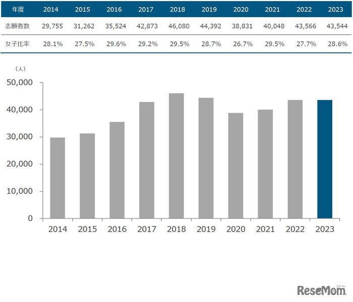 画像出典:大学プレスセンター 女子志願者数の推移(一般入試)