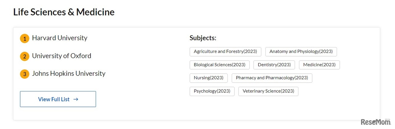 世界大学評価機関の英国クアクアレリ・シモンズ(Quacquarelli Symonds、以下QS)は2023年3月23日、研究分野別のQS世界大学ランキング(第13版)を発表した。米国の大学は32科目で1位。このうち、14科目はハーバード大学が獲得した。