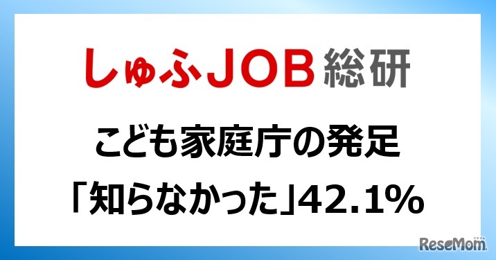 しゅふJOB総研は、「こども家庭庁」について就労志向の女性にアンケート調査を行い、2023年3月24日、結果を公開した。こども家庭庁の発足を「知らなかった」42.1%、こども家庭庁で子供たちの社会環境が「良くなると思う」とする回答は34.5%であった。