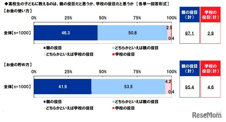 画像出典:アクサ生命保険 高校生の子供に教えるのは、親か学校か