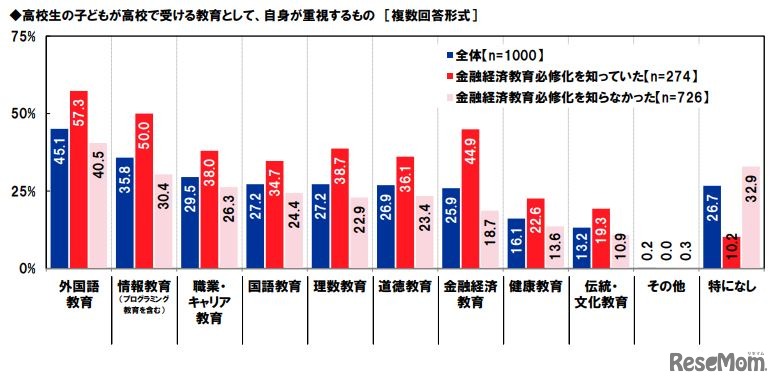 アクサ生命保険は、「金融経済教育とライフマネジメントに関する調査2023」の結果を公開した。高校生の子供に金融経済教育で学んでほしいことTOP3は、1位「金融・経済の仕組み等」、2位「社会保障制度・税金の仕組み等」、3位「生活設計・ライフプランニング」となった。