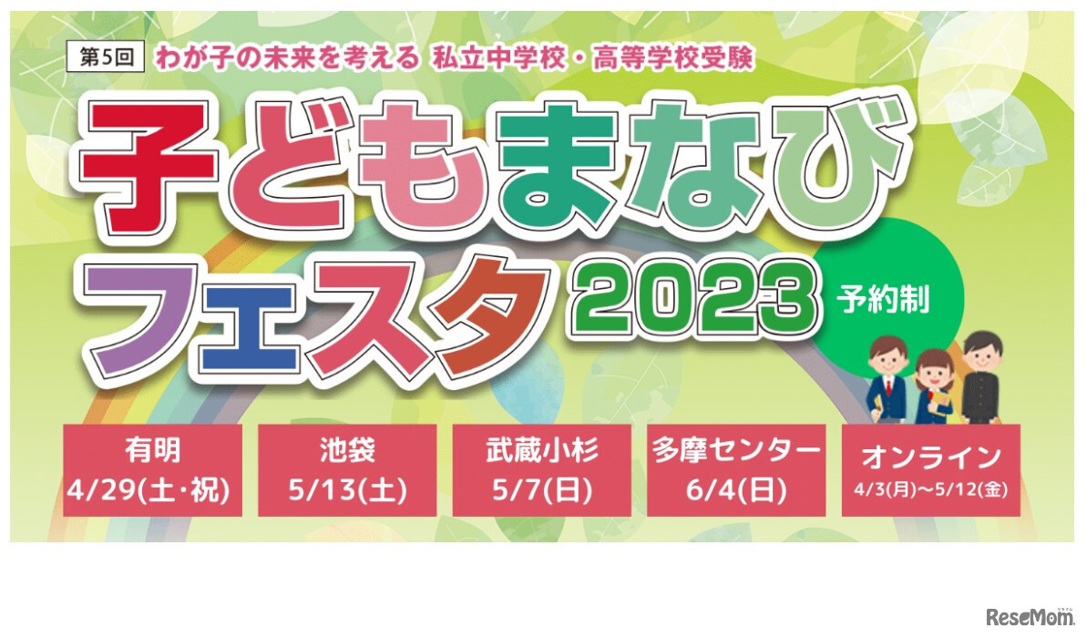 「子どもまなびフェスタ」出展校による学校説明会や、受験に詳しい識者等によるセミナーが2023年4月3日~5月12日の期間にオンライン開催される。3月30日現在、浅野中学校・浅野高等学校等18校が参加予定。申込みには、進学相談.comへの会員登録と予約が必要。